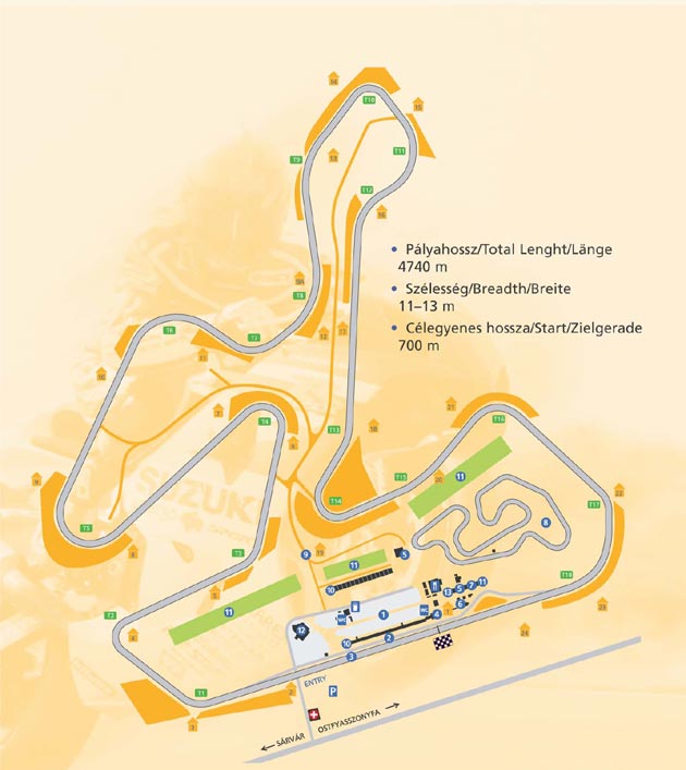 PANNONIARING Strecke: Länge: 4740m; Rechtskurven: 11; Linkskurven: 7; Streckenbreite: 11-13m